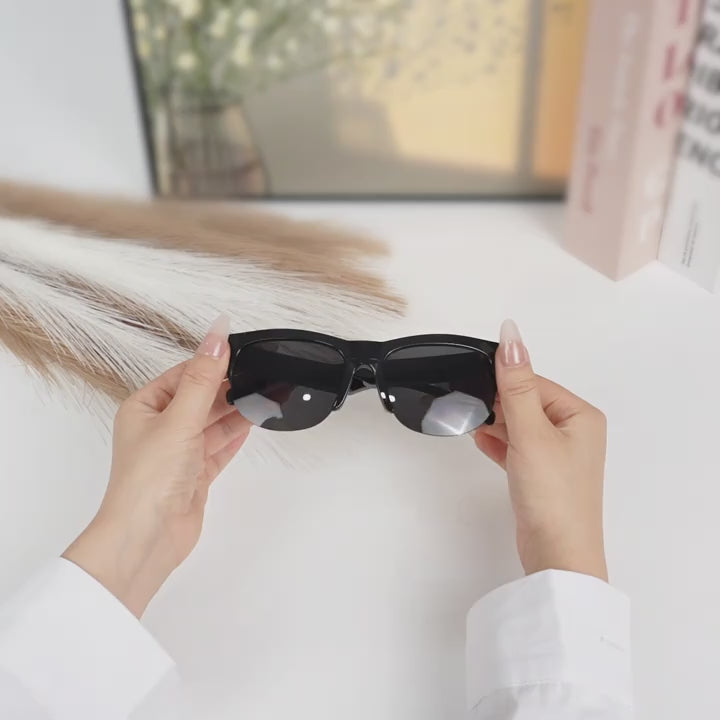 Disfruta de la libertad total con nuestras gafas inteligentes inalámbricas, diseñadas para ofrecer audio de alta calidad y llamadas de voz sin manos en cualquier lugar. Equipadas con micrófono incorporado y auriculares inalámbricos discretos, son perfectas para senderismo, actividades al aire libre o uso diario en interiores.